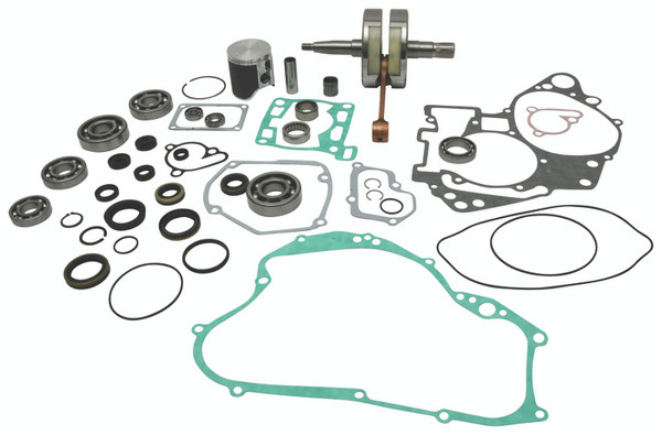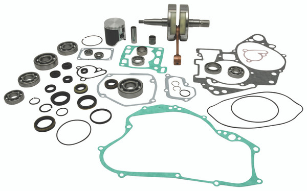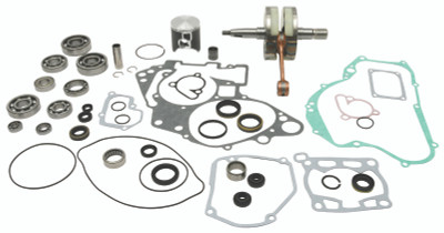 The only complete engine rebuild kit available. Kit includes Hot Rods heavy-duty crankshaft, Hot Rods counter balancer bearing kit (where applicable), Hot Rods main bearing and shaft seal kit, transmission bearing kit, and water pump rebuild kit, Vertex replica piston kit, Vertex complete gasket and oil seal kit, Hot Rods wrist pin bearing, or Hot Cams cam chain (where applicable)