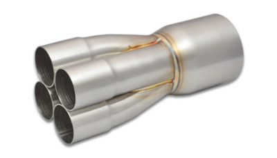Vibrant Performance 4-1 Merge Collectors have a single slip design ideal for naturally aspirated applications, featuring precise cut mandrel bent 304 Stainless Steel tubing with high quality TIG welded construction. Vibrant merge collector expanded inlets are designed to fit perfectly with Vibrant Stainless Steel piping. 4-1 Merge collectors range from 1.75” to 2.25” for inlet, and 2.5” to 4” outlet sizes.