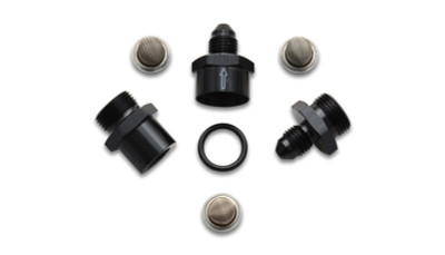 Vibrant Performance Inline Oil and Fuel Filter Sets are manufactured from 6061 Aluminum Alloy. Their compact design makes them easy to install in even the tightest of spaces. We include both Male and Female adapters for ultimate flexibility for the installer. We also include a 30 micron, 80 micron and 150 micron filter element, allowing you to use them with a wide variety of flowing media. The 30 micron filter is best suited for lightweight engine oils and pump gas. The 80 micron filter is recommended for heavier weight oil, alcohol and ethanol fuels. The 150 micron element is ideal for power steering and transmission oil. Available in Anodized Black only.