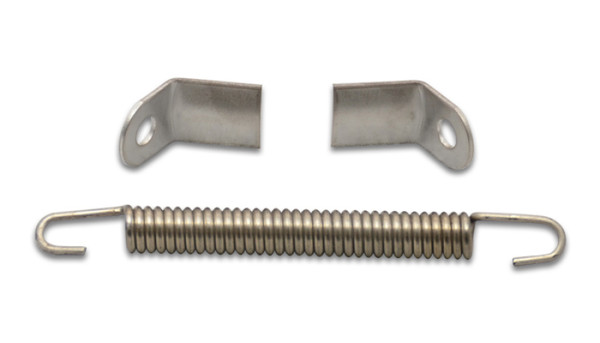 Vibrant Performance Collector Tab Kits include two tabs to weld on to each side: one for the collector, and one for the runner getting inserted into the collector. Collector Tabs are necessary when building a custom header using Vibrant Performance Stainless Steel Merge Collectors to secure and align the exhaust system in place with the included spring. The spring system holds the slip fit connections in place, however are easy to remove when servicing the vehicle. Each kit consists of one spring and two tabs.