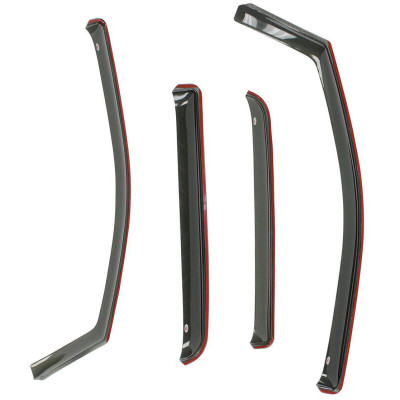 Wade In-Channel Wind Deflectors are a quick and quality solution to reducing wind, noise, heat, and glare without compromising the entry of fresh air when windows are rolled down slightly. They are easily installed by inserting the flanged edge into the directly window channel and secured with 3M automotive grade tape. Wade Wind Deflectors promote the circulation of fresh air while minimizing its volume and strength as it re-directs it up and into, or out of the vehicle. Their sleek design deflects wind and noise from entering the vehicle for a more pleasant ride any time of year. They are made from high-gloss smoke acrylic, and have transparency, so, visibility is never obstructed.