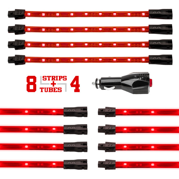 XK Glow Single Color XKGLOW UnderglowLED Accent Light Car/Truck Kit Red - 8x24In Tube + 4x8In Strip - XK041005-R