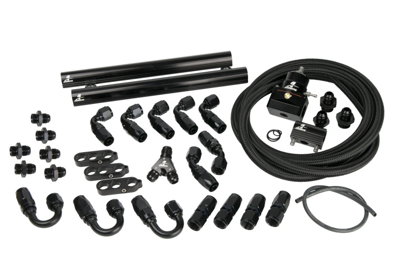 If you are one the lucky few that got your hands on a 2010 or 2012 Ford Cobra Jet Mustang, then you got a full Aeromotive Stealth Fuel System from Ford. We worked closely with Ford Racing engineers to perfectly match and assemble a fuel system for the CJ?s. And now, we are making them available to everyone. In fact many of the ?08 owners that have tapped the unused power left over from their cars, have already upgraded to the full Stealth System from Aeromotive. Now you can to. If you have a S197 (2005 and later) this fuel system is a direct bolt-in option. From the Stealth Fuel Cell that features and Eliminator pump, to the pre-cut and assembled black braided fuel lines to the fuel rails and custom all black fuel pressure regulator. Whether you are turning your mustang into a Cobra Jet or just tapping the power of your 4.6 GT or new 5.0L the Aeromotive Cobra Jet Fuel System is a perfect solution, saving you time and money with a kit built just for your car. Kit options include:?17158:?Complete Fuel System?17157: Back Half System?(includes fuel cell and all lines to the engine bay) 17156: Engine Kit (includes rails, regulator and everything to plumb your feed and return in the engine bay)?P/N 17156 ? Cobra Jet Complete Fuel System includes: All black, special edition?P/N 13101?Fuel Pressure Regulator ??P/N 14141?? 5.4L DOHC 4-valve Fuel Rails (all black) ??P/N 15631?? Fuel Sample Valve; Black nylon braided fuel line; All necessary plumbing and wiring to complete a fuel system installation in your engine bay including port fittings, bulkhead fittings, hose, hose ends, y-blocks, vacuum line and wiring.?Also available (not included):?P/N 18701?? 6g Stealth Fuel Cell Bracket?? All steel, black powdercoated fuel cell bracket. Mounts the spare tire well in the trunk of all 2005+ Ford Mustangs. Supports the cell on all seams and edges. OE on the 2010 and 2012 Ford Cobra Jet Mustangs.?P/N 14130?? Ford 5.0L DOHC Fuel Rails.