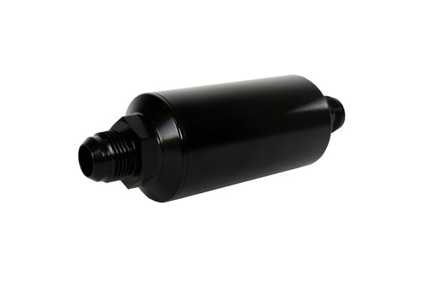 AN-10, 10-micron microglass?element, black anodize finish An inexpensive insurance policy to protect your investment, proper filtration is key to fuel system performance. Engineered filter solutions are required to achieve protection with minimum restriction. For 200 ? 3,000 plus HP applications, our filter assemblies offer unmatched flow, ease of installation and maintenance, along with the impeccable machining and finish you?ve come to expect from all Aeromotive components. High-flow, 10-micron microglass?replaceable element. Flows 2,000 lb/hr with a pressure drop of less than 1 PSI. Male AN-10. All filter assemblies feature an O-ring for positive sealing in high pressure applications. CNC-machined from 6061-T6 aircraft aluminum. Bright dip black anodized finish for a corrosion resistant, show car quality appearance.