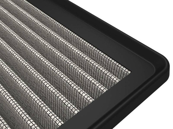 This filter features three layers of oil-free synthetic media and requires no oil during maintenance to provide maximum convenience. Its progressive layering provides great filtration efficiency and dust holding capacity. This media is best suited for street use. Pro DRY S filters are easily recharged with aFe's POWER CLEANER. aFe POWER performance air filters use a rounded, evenly spaced pleat design which allows for more usable filter surface area, providing increased flow and greater dust holding capacity. This pliable sealing surface conforms to even the most uneven filter housing, making for a perfect filter fit and sealing surface every time. This design eliminates the use of gaskets or sealants and always goes back to its original form. All aFe POWER flat panel performance air filters are constructed with a full 360-degree polyurethane frame. Unlike other materials that degrade after repeated heat cycles in an engine bay, polyurethane maintains its original molded shape.