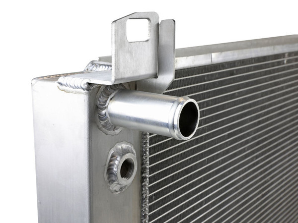 This BladeRunner Street Series Radiator features a 2-1/4" thick tube and fin core which provides greater heat dissipation and better coolant flow than the factory radiator for optimum cooling efficiency. The fabricated end tanks are constructed out of 1/8" aluminum plates for strength and durability. Billet aluminum inlet and outlet for long-lasting reliability. 100% TIG-welded for proven strength and durability. BladeRunner Street Series Radiators include a brass drain valve with fitting to easily connect a hose for draining coolant. Utilizes the factory mounting locations to provide stability for a hassle-free installation. Brushed aluminum finish with an aFe POWER logo painted on the front.