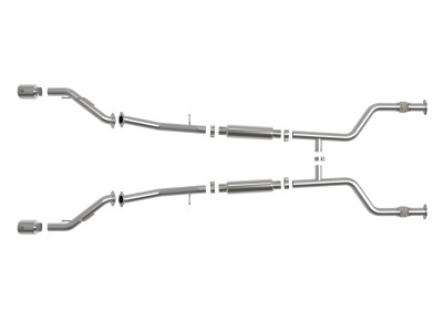 This cat-back exhaust system is constructed of 2-1/2 IN mandrel-bent brushed finished 304 stainless steel tubing for maximum strength and durability. Finishing off this exhaust system are dual 4-1/2 IN diameter black stainless steel clamp-on exhaust tips. The tips features a laser etched Takeda logo for a unique style. This system produces an aggressive sound unleashing all available horsepower and torque. Utilizing factory style flanges and hangers this system is a direct bolt-on system, which requires no cutting or modifications for a hassle-free installation. This cat-back exhaust system uses a heavy duty flex pipe with an internal interlock liner for added strength and durability. This system features a crossover balance tube designed to equalize and distribute exhaust pulses reducing drone, and improving sound. State-of-the-art computer-aided design technology is utilized for precise vehicle fitment. 100% TIG-Welded for race-proven strength and durability.