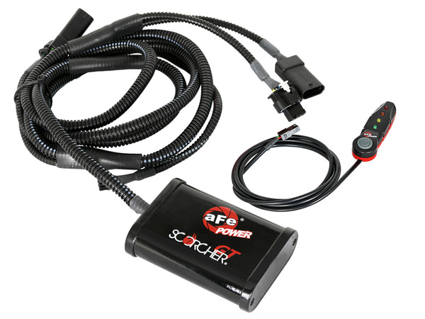 A simple 30 minute install will give you a huge increase in power. The aFe POWER SCORCHER GT Module includes a high quality case & wire harness with factory style connectors for an easy plug & play installation. A LED light switch provides In-Cabin On-The-Fly power adjustments. The 4-Power settings are adjustable with one button and the LED light represent the settings: Stock (Green), Sport (Yellow), Sport+ (Orange) and Race (Red). This performance module increase turbo boost. It improves vehicle performance and throttle response. Direct Plug & Play Power: This quick and easy plug & play SCORCHER GT module adds significant power by altering pressure sensor signals to increase turbo boost to improve vehicle efficiency, power and throttle response. In-Cabin On-the-Fly Power Adjustments: SCORCHER GT modules features In-Cabin On-the-Fly power adjustment to accommodate any situation. This adjustment is controlled by via LED light switch with a button that can be easily mounted in any location in the cabin. High Quality Case & Wire Harness: aFe SCORCHER GT modules uses high quality aluminum extrusion black powder-coated enclosure casing and factory style connectors which requires no modification to your factory harness. These factory style connectors, plugs directly into the stock wiring harness connectors and sensors. High Precision and Quality: SCORCHER GT modules are 100% tested for proper protection. These modules work amazingly on stock vehicles and are optimized for maximum performance with use of aFe POWER performance products. aFe POWER does not recommend to use with any other tuners or modules. aFe POWER recommends to use the SCORCHER GT module in Sport or Sport+ settings during towing. Emissions Disclaimer: This product does not require a CARB EO# (Vehicle does not exist in U.S.)
