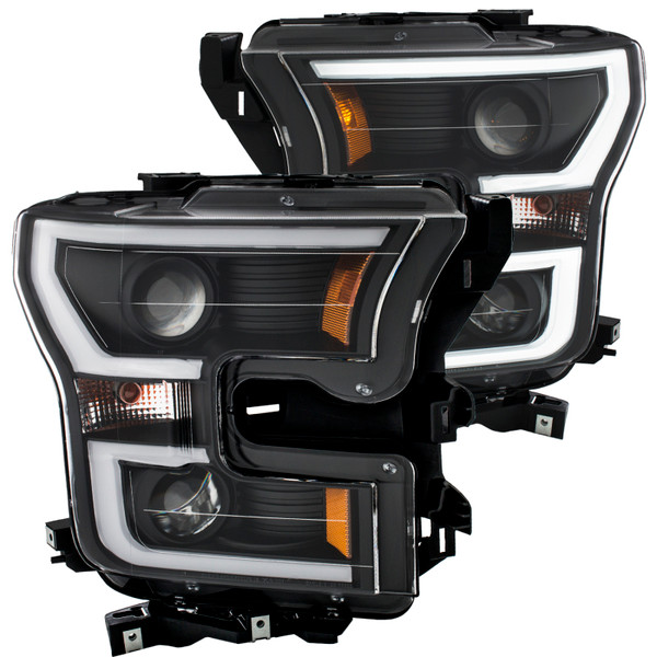ANZO 2015-2016 Ford F-150 Projector Headlights w/ Plank Style Design Black w/ Amber - 111347