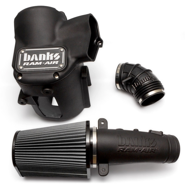 Increases Mass Air Flow by 36% vs stock for more power and better fuel economy. Enclosed housing keeps out hot power-robbing heat with direct access to cool air. Largest capacity air filter on the market for extended service life between cleaning. Super Duty Ram-Air Induction.Banks Ram-Air Intake feeds your 6.7L Power Stroke engine cooler, denser, outside air for greater power and fuel economy. Unlike the OEM airbox with its harsh bends and internal baffles, the Ram-Air's streamlined and optimized shape maintains air velocity and increases air density. Experience the benefits of greater flow, performance, and sound over stock. Its performance is extensively tested using Computational Fluid Dynamics software, validated on the flow bench, and proven on the vehicle in the real world. Key Features: "Big Ass Filter" extends service life and requires fewer cleanings. Side fender vent for additional sound and cold air induction. Unique silicone elbow with bellows allow for engine movement. Over 116.7 in2 more filtration media vs our closest competitor. Massive two piece XLPE airbox insulates against heat soak. Enclosed housing keeps out hot, power-robbing engine air. Largest filter on the market with 537.3 in3 total volume. Oversized airbox increases cool air volume around filter. More audible and aggressive induction note. Connects to OEM forward air inlet. 5-year limited warranty. Oiled air filter element. No check engine light