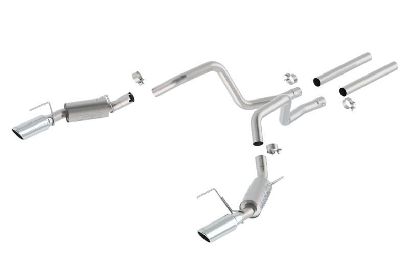 BORLA® has developed a revolutionary exhaust technology that enables our engineers to deliver unprecedented vehicle-specific control over the acoustical note of an exhaust throughout the RPM range, while retaining 100% of the power-adding capabilities of BORLA®'S patented multicore design. Called ATAK® (Acoustically-Tuned Applied Kinetics), this technology produces the highest available dB (decibel) levels in the BORLA street-legal lineup, and is designed for high-performance purists who prefer exhaust notes over their stereos. The focus of ATAK® is to pump the volume while retaining clarity of sound, avoiding distortion typically found in louder exhausts. With ATAK®, the sound output is tuned like a graphic equalizer to shape and focus sound waves for optimum high-volume output. The development of each ATAK® system begins with extensive study of each vehicle's acoustical properties. The technology is based on custom-tuned attributes of the internal muffler cores, which are calibrated on a vehicle-by-vehicle basis to deliver the most desirable sound. "The distance from the exhaust manifold to the rear bumper, the shape of the underbody shielding, the amount of ground clearance, all these factors affect the sound, and they're different on each vehicle. With ATAK® we take all this into account, and the result is amazing", says company VP of Sales & Marketing, David Borla. "The 2.5" diameter Cat-Back™ systems (PN 140329 and 140372) will blow your socks off – with no drone." The system features single mirror polished 4" round angle-cut rolled edge 12" long bright chrome on T-304 stainless steel tips on each muffler. Merge X-Pipe (PN 60510) can be added to this system. Like all BORLA® Cat-Back and Axle-Back systemss, each is handmade in the USA by master craftspeople and features premium high-quality austenitic T-304 stainless steel construction, ultra-smooth mandrel bent piping, and a Million-Mile Warranty.