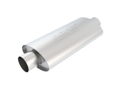 High quality austenitic stainless steel. Patented, race-winning XR-1 Raceline technology. 3 options: Offset - Made with the same patented, flow through design as the XR-1 Sportsman oval. The inlet/outlet are offset to the same side of the muffler, to accommodate transmission and frame rail interference on some applications Oval -- BORLAs #1 selling racing muffler. Satisfies the needs of most racing applications because it is the lightest, most compact, and highest flowing racing muffler in its class and at a competitive price. Record-holder Hurley Blakeney has run BORLAs on his AA/AT Ford T-Bird because he loves the quieter driver compartment without giving up any power.Round - Made with the same patented, flow through design as the XR-1 Sportsman Oval. This Muffler is 5 inches in diameter and 15 inches long. Designed for door car/ roadster applications that require a compact round muffler.