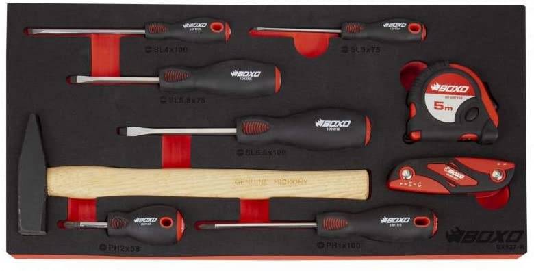 Each tool is encased in an EVA foam tool storage solution tray making tools fit securely in drawers to keep organized and no shifting during motion. The mirror chrome finish on the tools protects the tool set against corrosion, cleans up easily and looks great too.