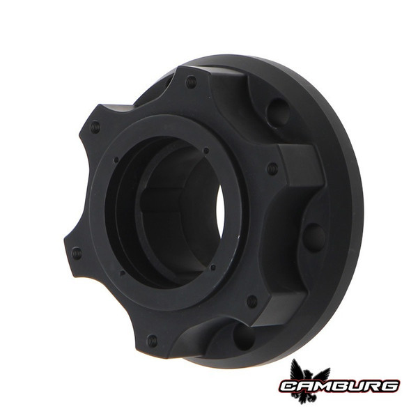 Our race and championship winning Camburg 2.50 front hubs are the ultimate front hub setup for race trucks and serious PreRunners. These are what we use on all our KINETIK 7200/6100/TT's. They are available in 5 on 5.5" and 6 on 5.5" bolt patterns along with the larger 6 on 6.5" racing bolt pattern. Our 2.50 lightweight front hub design has a wide bearing spread for increased strength and longevity. We also use larger 7" and 8" round material for the hub body for increased strength around the wheel stud area. We CNC machine the hubs in-house from more expensive and stronger 7075-T6 aluminum, then type II anodize them matte black. Our wheel studs are also machined in-house from 4340 chromoly, then heated-treated, stress relieved and black-oxide coated. They have 5/8-18 threads with an 11/16 shoulder for optimum strength. The tapered hub-centric center caps help get the wheels on when you’re out on the race course where time is critical. We supply them with high quality Timken bearings and races along with SKF seals. Our red brake rotor adapters round out the package with all the necessary hardware, O-rings, etc. and bearing preload spacers. Simple things like drilled head bolts to safety wire the brake rotor adapters on, show the attention to detail with our hub kits that you don’t get from other companies. We cut no corners or costs using the best materials, designs and processes. To complete this setup you’ll need our weld-in/bolt-on spindle snouts and our custom spindle nut wrench.