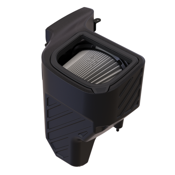 Less Restriction. More Airflow: The new front scoop leads straight to the large high-flow air filter. The stock intake struggles to pull air through a small restrictive panel filter.