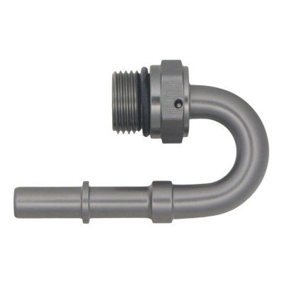 DeatschWerks 8AN ORB Male to 3/8in Male EFI Quick Connect Adapter 180-Degree - Anodized Matte Black - 6-02-0116-B