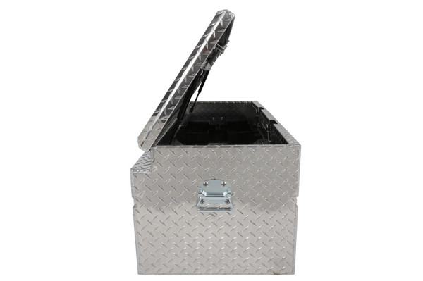 Dee Zee Tool Box - Red Label Chest. Constructed of heavy duty Brite-Tread aluminum. Crown style lid with a full pan double-V stiffener for superior rigidity. Convenient side handles for easy transport. Other features: lockable stainless steel paddle handles, dampened gas shocks, closed cell foam gasket, and self-adjusting strikers. Removable plastic tool tray to help keep small items organized.