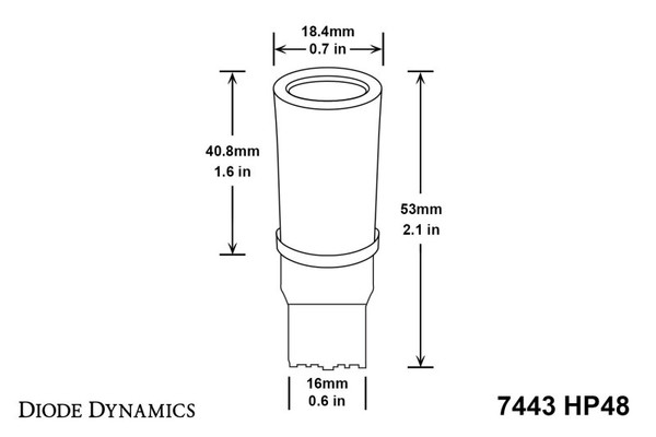 Features Direct replacement for factory incandescent 7440/7443-size turn signal bulb. 48 LEDs in omnidirectional design. Diffusing cover for even output and clean appearance when off. Molded connector with sturdy terminals. Adds more modern LED appearance. Plug and play simple installation. 250 lumens per bulb. Overview Design. Add a modern appearance to your vehicle with the 7440/7443 HP48 turn signal bulb. Populated with 48 Epistar 3014 LED chips the HP48 upgrades the factory yellowish incandescent bulb to a modern LED appearance. Thanks to the cap on the top the light output is directed backward and away from the bulb instead of straight out. A diffused PC lens surrounds the LED chips allowing the light output to shine much more uniformly. Best of all installation only takes minutes - simply take out your factory bulb and the HP48 will fit snugly in the socket. Brightness. At 250 lumens the HP48 is a cosmetic upgrade only and will provide the same light output as your factory bulb. All Diode Dynamics LED lighting is rated with accurate measured lumen figures not calculations or guesses. We test the true output in-house and provide you the real numbers to compare. Reliability. Unlike other bulbs on the market this bulb is built with constant-current circuitry along with transient suppression. That means this bulb will last for years not months with no flickering or failure. And like every Diode Dynamics product it's backed by an industry-leading three-year replacement warranty.