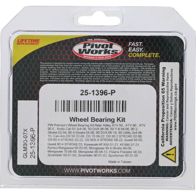 Quick view Pivot Works Pivot Works Premium Wheel Bearing - 25-1396-P Compare $37.99 Pivot Works Wheel Bearing Kits keep powersports vehicles riding smoothly and safely for years to come. Built to meet OEM bearing standards.This Part Fits:YearMakeModelSubmodel2008Arctic Cat50 2x4Base2008-2015,2017-2022Can-AmDS... Add to Cart Add to Cart