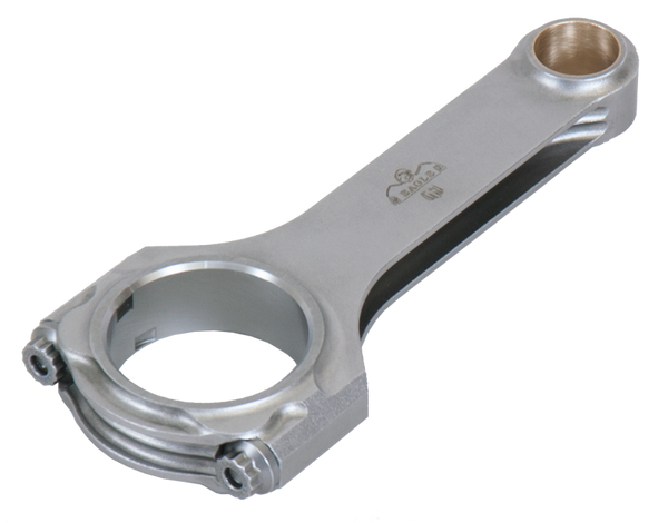 Eagle's 4th Generation H-Beam rods are forged from ASME certified 4340 steel in a two-piece forging and feature a fully machined and shot-peened surface. Eagle's 4th Generation design features thicker beam webbing for increased power handling capabilities, Increased beam and cap contact area and shoulder area to inprove bore stability under high load, and new small end profile to reduce reciprocating weight. Sizing is held to exact tolerances. Sold as a weight-matched set. Equipped with ARP 2000 bolts. Recommended for competition use.