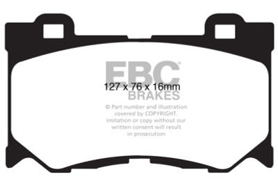 There are TWO reasons our customers love Redstuff, First because they are the lowest dust pad we have encountered by reducing dust by 60-90-percent. Plus the minimal dust you see is very easily removed with a simple sponge wash as it contains no steel fibre particles as in ALL OTHER pads. Second they brake like an alligator right from cold (as good as Original pads or better) and just get better as they heat up.This material is a Synthetic Fiber based brake compound enhanced with ceramic particles. If you have previously tried EBC redstuff (pre-ceramic compound) this material is light years ahead. It lasts longer; it brakes better and is quieter. Being a hard wearing pad, bed-in times can be as long as 1000 miles and drivers must be patient until the pad takes up the shape of their disc (brake rotor). This is a truly impressive fast road pad for repeated heavy braking.It emits far less dust than semi-metallic pads and has been proven to stop a passenger car/sedan/sport compact/hot hatch 13 metres quicker than OEM pads from 100mph/160kph. Features EBC Brake-In surface coating which conditions rotor surface and accelerates pad bed-in. Nominal friction coefficient 0.5 with approx. 50-percent dust reduction.Most EBC Red Ceramic pads are approved to ECE R90 brake safety regulation.