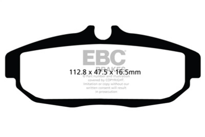 There are TWO reasons our customers love Redstuff, First because they are the lowest dust pad we have encountered by reducing dust by 60-90-percent. Plus the minimal dust you see is very easily removed with a simple sponge wash as it contains no steel fibre particles as in ALL OTHER pads. Second they brake like an alligator right from cold (as good as Original pads or better) and just get better as they heat up.This material is a Synthetic Fiber based brake compound enhanced with ceramic particles. If you have previously tried EBC redstuff (pre-ceramic compound) this material is light years ahead. It lasts longer; it brakes better and is quieter. Being a hard wearing pad, bed-in times can be as long as 1000 miles and drivers must be patient until the pad takes up the shape of their disc (brake rotor). This is a truly impressive fast road pad for repeated heavy braking.It emits far less dust than semi-metallic pads and has been proven to stop a passenger car/sedan/sport compact/hot hatch 13 metres quicker than OEM pads from 100mph/160kph. Features EBC Brake-In surface coating which conditions rotor surface and accelerates pad bed-in. Nominal friction coefficient 0.5 with approx. 50-percent dust reduction.Most EBC Red Ceramic pads are approved to ECE R90 brake safety regulation.