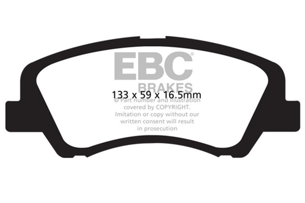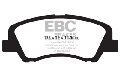 If you simply need a quality OEM replacement pad, look no further than Ultimax. Made in the UK Bristol EBC Brakes manufacturing plant Ultimax is a beautifully engineered brake compound that lasts well, produces minimal dust and is the perfect choice for the urban or daily driver. Why spend more if all you need is a quality replacement pad.The Ultimax pad does include a small percentage of steel fibre to achieve its price point, far less content than our competition where steel fibre content can attain 50 volume and this optimum fibre blend is what makes Ultimax both popular and unique amongst brake blends .Once bedded in Ultimax will inspire confidence in any car light truck or SUV no matter how you drive.Its universal heat range abilities and low rotor wear are additional benefits of the Ultimax pad range which is the EBC worldwide number one selling brake with numbers of sets sold running into tens of millions over the recent years. Unlike many of our performance grades Ultimax has remain unchanged as a pad compound for ten years now, a true testament to its success and customer acceptance. Why change a winning formula.Black coded in the EBC range EBC Ultimax is a fully ECE R 90 approved brake pad range and at its lower price point, less than HALF the price of original parts yet TOTALLY EQUIVALENT by nature of its R 90 brake safety approval, Ultimax offers great value for money and first class driving safety.When replacing brakes of any kind please remember how important brake safety is to your own well being and either have a professional mechanic install your new brakes or if you are a qualified mechanic use the EBC installation DVD as a guide in support of your vehicle owner's manual. These installation guide DVD tasters can be viewed here and the full DVD purchased from online vendors.