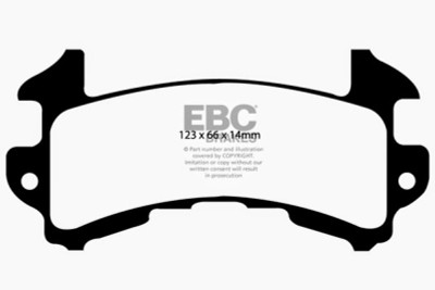 Designed for premium street driving offering better brake effect up to 600-degrees C (1100-degrees F). EBC Greenstuff has a high initial brake effect and gives drivers confidence from first application of the brake pedal. There is no such thing as a NO DUST pad. The very nature of how a brake works requires that some dust be generated to avoid rotor vibration (shimmying). The EBC pad creates less dust and dust is more easily washed off than most. All pads create more dust as they are bedding in especially if rotors are worn. Nominal friction coefficient 0.55. For heavier faster cars and vehicles above 200bhp we strongly recommend Redstuff which DOES offer much less dust.