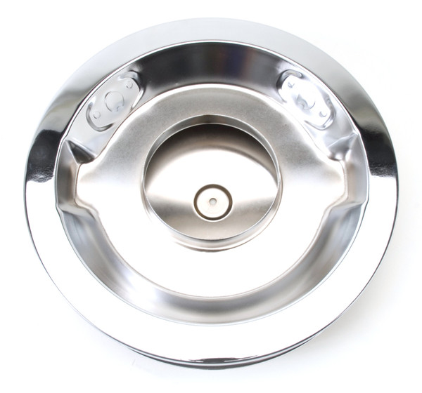 Edelbrock triple chrome-plated round air cleaner #1221 works with all popular 5-1/8" diameter carburetors (Performer Series, Thunder Series AVS, Holley, Thermo-Quad, Quadra jet and Carter AFB). The 10" and 14" models have knock-outs in the air cleaner base for use with Edelbrock crank case ventilation adapter #1205 (sold separately). #1208, #1209 and #1221 fit all Edelbrock carburetors. Heights of air cleaners are in parentheses, measured from the gasket flange to the top of the supplied retaining nut. Dimensions are accurate within 1/8".