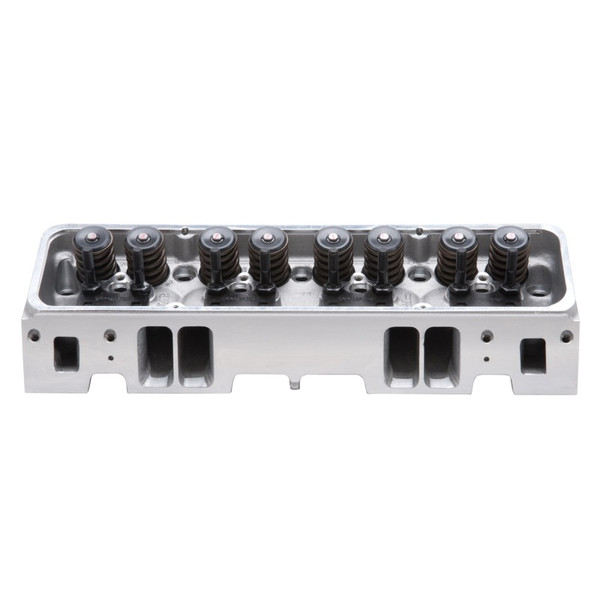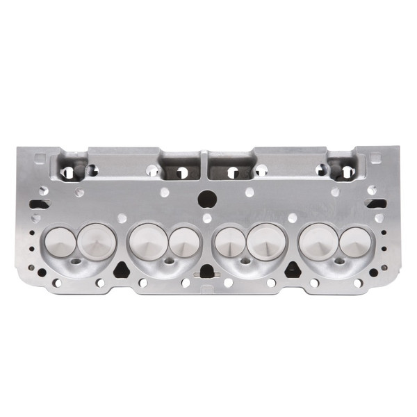 The Edelbrock #60985 E-Tec cylinder head is replacements for 302, 327, 350 & 400 c.i.d. S/B Chevy engines with "Vortec-style" manifolds. They feature an LT1-style raised runner intake port design for increased air-flow and ultimate performance. A unique combustion chamber design positions the spark plug closer to the center of the cylinder, promoting a more efficient combustion resulting in more power. This head includes an adjustable rocker stud and guide plate set-up for use with adjustable rockers or washers to properly position the stud height to accommodate factory style self-aligning rocker arms. They have 20% more exhaust flow than a cast iron Vortec head, great performance up to 6000 rpm and can produce 9.5:1 compression with stock pistons in 350 cubic-inch engines. RPM E-Tec cylinder head is dual-drilled and will accept 1987-95 center bolt and/or 1986 & prior perimeter flange mount valve covers and most stock exhaust manifolds.