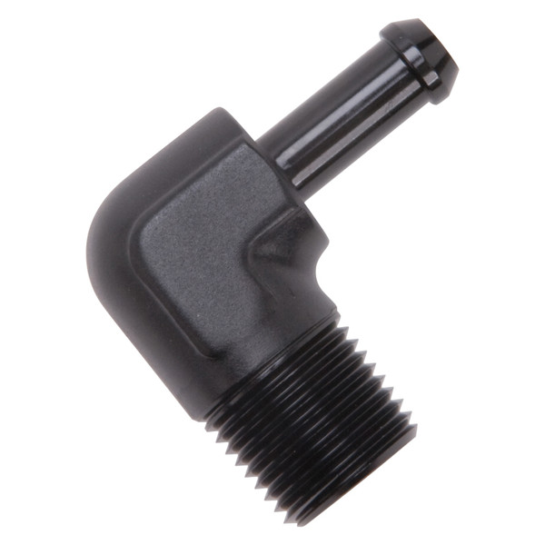 Edelbrock Hose End 90-Deg 1/2In NPT to 3/8In Barb Black Anodize - 8169