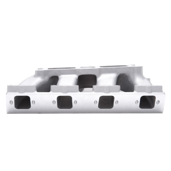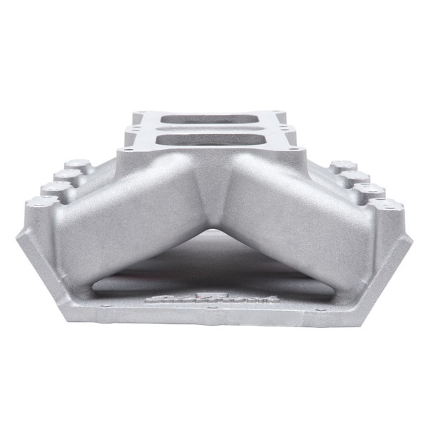 Edelbrock part #7524 Dual-Quad HEMI intake manifold is intended for use with Mopar Gen II (1964-71) 426-572 HEMI engines operating in the 2,500 to 6,500+ range. This new intake manifold is a single-plane Air-Gap design with a dual square-bore 4150 style carburetor pad. Carburetor spacing and height are the same as Mopar Performance dual-quad #P5153737, making it a direct bolt-on to all vehicles with a shaker hood. They also retain the same carburetor linkage location from the factory. The Dual-Quad HEMI is compatible with factory style cylinder heads, but optimized for use with Edelbrock Victor Jr. HEMI cylinder heads. Requires Edelbrock Coil Bracket #8079 for use with OE style coils.