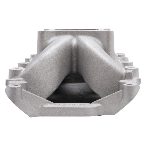 Edelbrock part #29215 Victor Jr. 302 EFI intake manifold is designed for use with Ford 289-302 competition engines using modified stock cast iron or aftermarket Windsor-style cylinder heads such as Edelbrock #60259 and #77169 or equivalent. Victor Jr. EFI also features bosses for rear water crossover. Port exit size at cylinder head is 1.08" x 1.90" with extra material to accommodate a 1.18" x 2.10" opening. The Edelbrock Victor Jr. #29215 EFI is a single-plane, high-rise intake designed for maximum race-winning power at higher engine speeds.