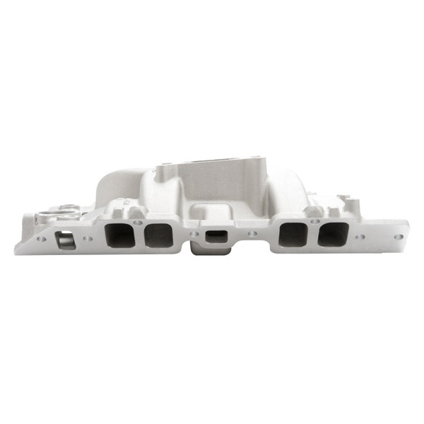 Edelbrock part #7163 Performer RPM 2-R intake manifold is designed for street 396-502 c.i.d. Chevrolet V8's with high-performance rectangular-port cylinder heads. This dual-plane high-rise manifold offers maximum horsepower with a broad torque curve. No provisions for exhaust heated chokes. Accepts late-model waterneck, air-conditioning, alternator and HEI equipment.