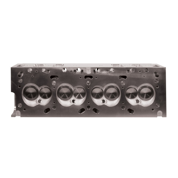 Intended for installation on 1965-1976 Small-Block Oldsmobile 350-403 c.i. engines equipped with a flat tappet camshaft, these 356-T6 aluminum casting cylinder heads (PN61039) are a modern refinement to our PN6051 heads, except they can accommodate a factory-style mechanical fuel pump. A smaller 68 cc combustion chamber achieves a more appropriate small block compression ratio compared to our PN61025/61029’s larger 77 cc chamber, which yields a lower compression ratio than most engine builders desire on a small block engine. These heads require a 3.9375” minimum bore and feature a modern chamber design with optimized spark plug positioning. Maximum airflow is achieved through the factory 6-degree valve angle using high-flow 200 cc intake and 130 cc exhaust port volumes, along with 2.072” intake and 1.680” exhaust valve sizes in their O.E. positions. A finished deck thickness with added material above the intake port and pre-counterbored head-bolt holes for .5” diameter studs provide extra clamping force in key areas. A stud-and-guide plate valvetrain system (as opposed to the O.E. pedestal type) provides a solid foundation for the beefier diameter pushrods, and Helicoil inserts in the exhaust and rocker stud holes keep bolts secured. However, there are no provisions for a heat crossover. Although these heads will fit on Big-Block Oldsmobile engines, the 68-cc combustion chamber size is not ideal for a big-block application as it will raise compression. See PN 61025 and PN 61029 for big-block specific cylinder heads.