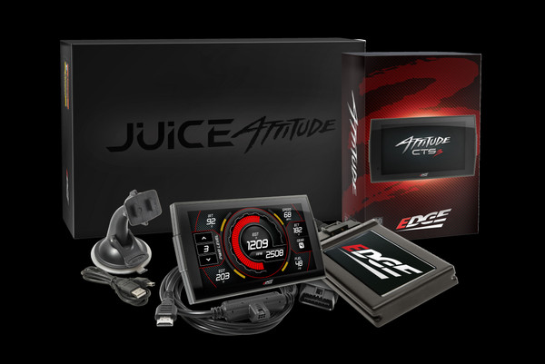 Take your VP44 to a whole new level with Edge's Competition Juice, more RPM's, more fueling, and an all-new CTS3 color touchscreen display. Customers asked and we delivered with Power Level 7 and fueling up to 3600 RPMs you'll gain up to 150HP! This product is ideal for those core enthusiasts competing in pulls or dyno competitions. Featuring our state-of-the-art CTS3 technology, the Juice with Attitude just entered the a whole new realm to continue pushing the limits of on-the-fly power, control, and monitoring. The Attitude CTS3 is an in-cabin controller that not only monitors vital vehicle parameters but allows you to shift-on-the-fly by controlling the Juice module for maximum control and power. If you own a diesel truck and you're looking for complete control over your driving experience, look no further than the Juice with Attitude CTS3. With five (some applications have six with the hot unlock) different power levels and the ability to change power levels on the fly, advanced dynamic safety features for engine and transmission protection, and huge horsepower gains, the Juice with Attitude CTS3 delivers mild to wild, and everything in between. The Attitude CTS3 monitor stays mounted in the cab for real time data, everything a complete set of aftermarket gauges would monitor and more. The Juice with Attitude CTS3 delivers improved throttle response, better drivability, safety power backdowns, and power like no other module in the industry. Whether you own a 1998.5-2021 Dodge/Ram Cummins or 2001-2007 GM Duramax, Edge has a complete lineup of products to suit your needs. Attitude CTS3 Features: Slim, sleek 5" full color, high-resolution touch screen with the latest swipe technology. Custom color mixer for gauge arcs, needles, and backgrounds. Multiple gauge screen layouts, with power adjustability from the screen. Fully customizable backgrounds. WiFi updates. HDMI style plug for power and linking EAS accessories. One-touch easy menu navigation. Notification center. Up to 6 on-the-fly adjustable power levels. Up to an additional 150HP and 380 ft lb TQ* depending on application. Performance tuning built specifically for mileage, towing, daily driving, and performance. Dynamic safety features (cold engine protection, backdowns, turbo timer*). Improves low-end response, adjustable torque management and low boost fooling. Switch between US or Metric units of measure. Light sensitivity meter to dim screen as ambient light decreases.