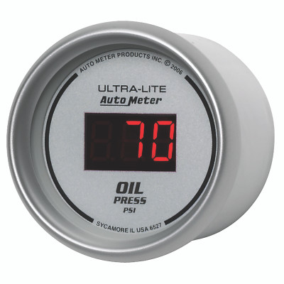 Quick view AutoMeter Autometer Ultra-Lite 2-1/16in 100PSI Silver Dial Digital Oil Pressure Gauge w/ Red LED - 6527 Compare $176.99 Without Oil Pressure, Your Engine Is Not Likely To Run For Long. There Are Few Parameters That Are More Important To Have Precise Readings On In Your Vehicle. Autometers Digital Oil Pressure Gauges Uses An 1/8" Npt Pressure Transducer For Incredible... Add to Cart Add to Cart