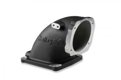 These cast aluminum EFI intake elbows allow the use of GM LS throttle bodies on any intake manifold w/ the 4500 mounting flange. Our design incorporates an optimized transition from the throttle body to the intake plenum for maximum airflow and distribution. Dual throttle cable mounting bracket bosses are included while the 4500 flange pattern allow the elbow & throttle body to be mounted forward, sideways, or rearward. The throttle bracket is included.