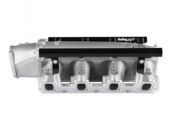The Holley LS3 Ultra Lo-Ram intake manifold kits are designed for GM LS Gen III and IV engines equipped with GM LS3/L92 cylinder heads. These intake manifolds will work with OE or aftermarket cylinder heads. The Lo-Ram intake manifolds are designed for forced induction (supercharged or turbocharged) engine applications with peak power at 7000-8000 rpm depending on the application. The front entry plenum flange has a 105 mm opening to work with throttle body part number 112-581 or similar models. The base intake manifold is designed with a lower overall height to fit under a stock or mildly modified hood. The LS3 Ultra Lo-Ram is constructed to provide a very low profile modular intake manifold suitable for fabrication of special throttle body adapters or inlet ducts for custom installations. Available with single or dual injector provisions and a burst panel flange options.The fuel rail kits come with two sets of brackets. A set for long (usually standard length) fuel injectors and a set for short (such as Pico, or LS7) fuel injectors.