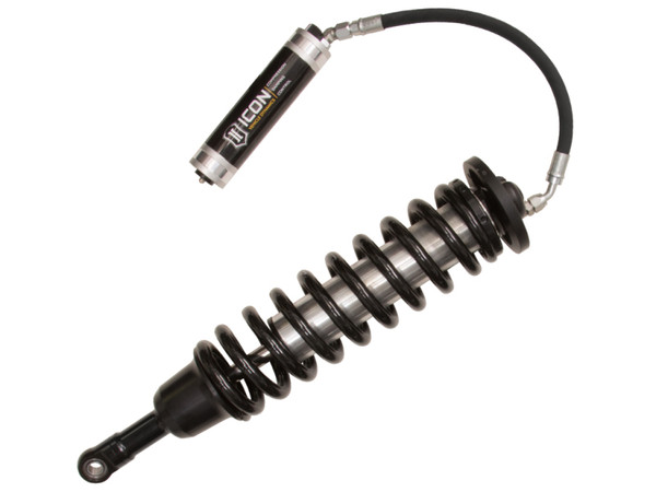 The engineers at ICON Vehicle Dynamics took a different approach to position sensitive performance in our 3.0 front coil over shock. Instead of bypassing a small internal piston at the cost of poor control, road holding, and cornering like a traditional internal position sensitive shock, our shock starts with a true 3" main piston that has robust features such as digressive rebound and flutter stack compression. This combination produces outstanding control, great response, and unparalleled ride performance. To achieve even more control for extreme off-road use, we added an additional internal hydraulic system (much like an external mounted hydraulic bumpstop) that produces the extreme forces required during the last 40% of travel to achieve maximum bottom out control. These multiple stages of compression and rebound have been tuned independently to maximize overall performance of the Ford SVT Raptor front suspension. For owners who wish to optimize the ride specific to his or her liking, the front coil-over shocks are equipped with an external, "Easy to Adjust" Compression Damping Control Valve, that is effective for the entire stroke of the shock. This compression adjustment valve offers you 10 high resolution settings, each bringing a true feel difference from soft to firm.