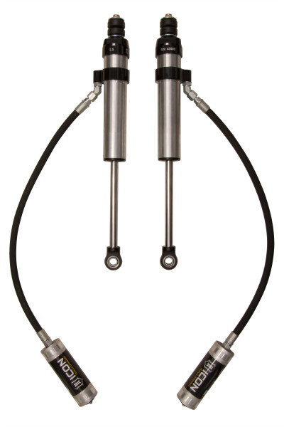 ICON Vehicle Specific (V.S.) 2.5 Aluminum Series shocks are designed and built to give your vehicle outstanding performance off-road and a smooth ride on the street. These shocks are configured specifically for each application in both length and damping tune. Like all ICON'S Shock Absorbers, V.S. 2.5 Aluminum Series shocks are 100% rebuildable and 100% revalveable. For piggyback and specific remote reservoir applications, ICON'S unique use of a 6061 billet aluminum manifold a few inches below the top cap of the shock creates an internal Bump Zone that when used creates an additional 20% of damping force. This additional force helps prevent harsh bottom outs and controls the suspension when compressing at high velocity. If you are looking for a more user defined tune, consider looking into the Compression Damping Control Valve (CDCV) or the Omega Series bypass shocks.
