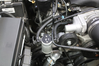 During the process of venting crankcase pressure back through your intake track, large amounts of oil, in the form of vapors can gather/accumulate in your intake tube, intake manifold runners and even dilute your gas, lowering its octane level. This happens on all engines and is even worse with forced inducted vehicles (supercharged and turbocharged) as crankcase pressures are increased. To combat this, we have developed an oil separator of our own design. Milled from solid billet aluminum this is a rock-solid piece. It has a knurled tank base for easy removal to drain the spent oil and an O-ring seal to prevent any leaks. Filtering consists of a fine mesh stainless steel screen that traps fine oil vapors and releases them once heavy enough to fall. They then pass through a 1/2" thick 1/16th" aluminum honeycomb filter where they grow every larger and then fall into the bottom. By the time the oil gets through the filter it's too heavy to be passed on into the intake. The tank holds 3 oz of fluid, while that may not sound like a lot, you shouldn’t see that much oil in your PCV system. Drain it every 2000-3000 miles and you will never come close to filling it.