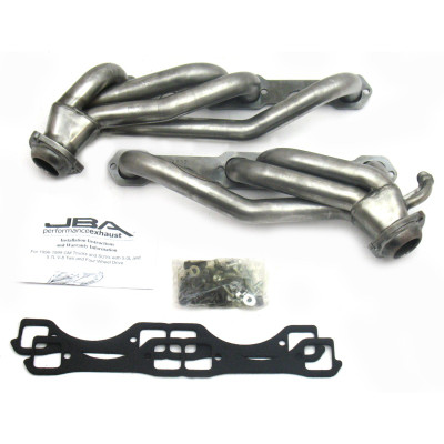 JBA shorty headers are one of the foremost performance upgrades you can bestow upon your beloved car, truck, or SUV. JBA Headers are significantly less restrictive than stock manifolds and dramatically increase the power and efficiency of your engine. Each header is constructed from durable stainless steel to endure the abuse of racing, towing, and daily driving – built to withstand it all. JBA’s proprietary Firecone collector design uses race proven technology for producing maximum power and torque gains where you drive most. Each system includes factory style emission connections and high-quality hardware for a professional no-leak installation.