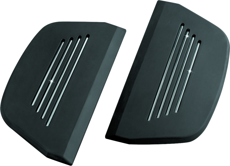 Add style without compromising the vibration damping comfort of your stock floorboard pads. Inserts for the driver floorboards ride on rubber isolators to keep your feet buzz-free. The passenger inserts pop right in place of the stock pad.