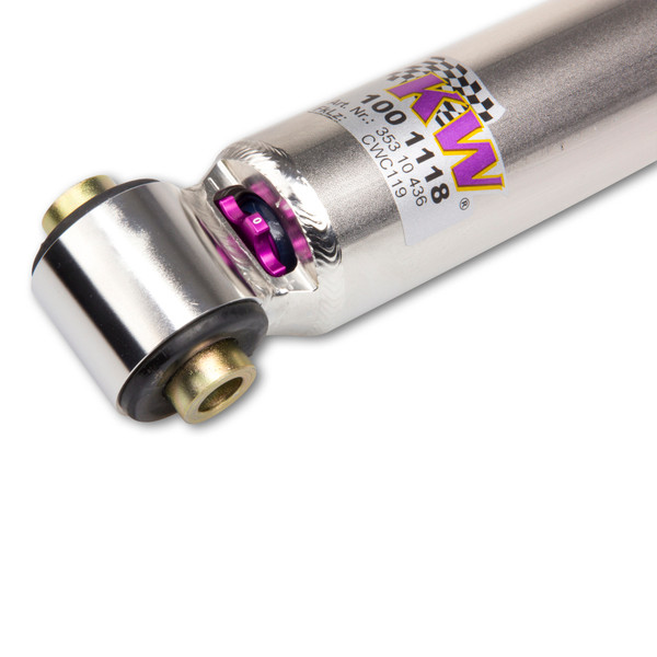 Cutting-edge motorsports technology for more performance on the road. Like every suspension product developed by KW automotive, the suspension manufacturer, and manufactured in Germany, the KW V3 Coilover suspension kit also provides a significant plus in safety reserves in road traffic. Thanks to the chassis with its high-quality dampers, springs, and elastomer spring elements, pitching and rolling movements during load changes such as evasive maneuvers, cornering, acceleration, and braking are significantly reduced. The braking distances are also shortened. Thanks to improved support and feedback, drivers not only feel safer but driving in everyday life becomes even safer. With compression and rebound stage damping, that can be set separately and independently of each other, the damper setup can be customized to your personal driving preferences or vehicle changes such as weight, tire characteristics, or altered vehicle rigidity. True performance optimization is only possible with this unique, patented system. For example, this allows the compression damping force to be increased and get more grip from the tires, to improve cornering behavior and reduce squat without simultaneously altering the rebound stage damping which is optimally matched to the spring rate, a scenario which results in reduced grip and the associated loss of performance. The KW V3 coilover kit is the ideal tool for performance-oriented drivers and experienced tuning enthusiasts who place a strong emphasis on the overall performance of their suspension. The Variant 3 features patented TVR-A and TVC-A technology that provides separately adjustable rebound and compression damping. The extensive adjustment range of the independently configurable rebound and compression make it easy to directly influence the steering behavior, directional stability, grip and handling characteristics for confident and repeatable results at the limit of driving dynamics.