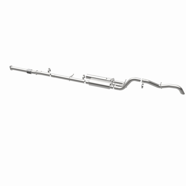 The MagnaFlow Chevrolet Colorado / GMC Canyon Overland Series Cat-Back Performance Exhaust System #19648 is engineered for off-road function and built to explore further. This Chevrolet Colorado / GMC Canyon exhaust system is designed for the 2023-2024 Chevrolet Colorado and GMC Canyon equipped with the L4 2.7L engine option. The high clearance exhaust design of this kit is designed to keep your truck clear of any challenging terrain or obstacles you may come across. #19648 3” diameter mandrel bent main piping passes through an 18” straight-through oval muffler and No Drone Technology (NDT) tuned chamber before exiting in a high-clearance single passenger side rear exit style. MagnaFlow NDT utilizes passive quarter-wave noise cancellation to minimize the unwanted droning noises that can otherwise occur at highway cruising speeds. This truck exhaust kit can be tailored to your preferred exhaust tone by installing various exhaust modules that are integrated with the muffler’s accessory port. The included pipe cap, J-pipe and NDT modules can be combined in different configurations to mitigate a wide range of droning frequencies. Looking for a smoother, quieter ride on the trails? Simply connect the NDT module. Prefer a more aggressive signature sound? Install the pipe cap to cover the muffler accessory port. Exhaust kit #19648 utilizes a direct-fit, easy to install design that replaces your OEM exhaust system from the catalytic converter on back. This Chevrolet Colorado / GMC Canyon cat-back performance exhaust system is made of durable, corrosion resistant stainless steel and produced using advanced CNC precision robotic manufacturing techniques, all backed by MagnaFlow’s limited lifetime warranty.