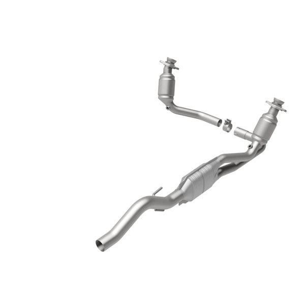 Keep the check engine light off with MagnaFlow California Grade CARB Compliant Direct-Fit Catalytic Converter 447248. With features including free-flowing mandrel-bent tubing and highly corrosion resistant stainless steel construction, easily install this spun body converter yourself using the proper tools, no cutting or welding required. MagnaFlow's state-of-the-art metrology department uses the latest 3D scanning systems during research and development, so you can be confident that your new part will fit and function like the original equipment. By replicating the OE spun body design, the single laser fusion weld greatly reduces the possibility of a leak, and our compact, low-mass design also allows for greater thermal efficiency. This direct-fit catalytic converter is designed specifically for the 2000-2001 Dodge Dakota and interchanges with OE parts 5210 3254AE and 5210 3254AA, among others. Hardware is included to eliminate the hassle of working with corroded factory parts. This replacement part is designed to meet or exceed California Air Resource Board requirements, and has undergone additional testing to comply with CARB guidelines to allow for legal use in California and CARB restricted states, for the listed vehicles.