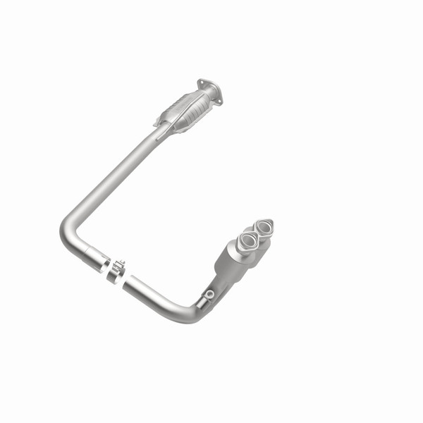 Keep the check engine light off with MagnaFlow HM Grade Federal/EPA Compliant Direct-Fit Catalytic Converter 93649. With features including free-flowing mandrel-bent tubing and highly corrosion resistant stainless steel construction, easily install this spun body converter yourself using the proper tools, no cutting or welding required. MagnaFlow's state-of-the-art metrology department uses the latest 3D scanning systems during research and development, so you can be confident that your new part will fit and function like the original equipment. By replicating the OE spun body design, the single laser fusion weld greatly reduces the possibility of a leak, and our compact, low-mass design also allows for greater thermal efficiency. This direct-fit catalytic converter is designed specifically for the 2004-2006 Jeep Wrangler and interchanges with OE parts 5205 9681AE and 5205 9681AA, among others. Hardware is included to eliminate the hassle of working with corroded factory parts. This replacement part is designed to meet or exceed Federal emissions requirements set forth by the EPA, complying with legal standards for OBDII Federally registered vehicles with Federal/EPA Emission systems.