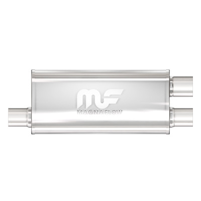 The MagnaFlow 5 X 8in. Oval Straight-Through Performance Exhaust Muffler 12268 is engineered to enhance your ride with a healthy helping of our signature exhaust sound and dyno-proven performance thanks to its free-flowing straight-through perforated stainless steel core wrapped in stainless steel mesh and acoustic fiber fill. The reversible, universal 2.5/2.5in. diameter inlet/outlet Straight-Through layout allows you to install it in whatever orientation and configuration you see fit. However, professional installation is highly recommended. Muffler 12268s weight-optimized 5x8x18in. oval-shaped body features a satin finish that elevates the overall aesthetics of your current exhaust setup. 12268 is made of durable, corrosion resistant stainless steel and produced using cutting-edge CNC precision robotic manufacturing techniques, all backed by MagnaFlow's limited lifetime construction warranty.