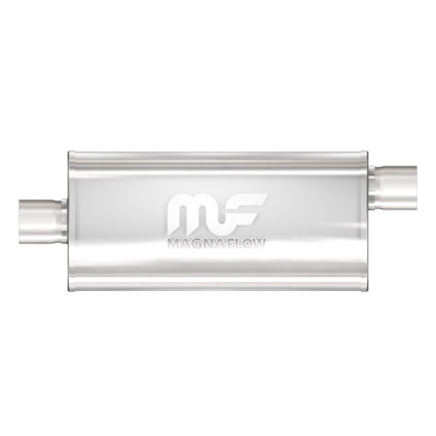 The MagnaFlow 5 X 8in. Oval Straight-Through Performance Exhaust Muffler 12388 is engineered to enhance your ride with a healthy helping of our signature exhaust sound and dyno-proven performance thanks to its free-flowing straight-through perforated stainless steel core wrapped in stainless steel mesh and acoustic fiber fill. The reversible, universal 3/2.5in. diameter inlet/outlet Straight-Through layout allows you to install it in whatever orientation and configuration you see fit. However, professional installation is highly recommended. Muffler 12388s weight-optimized 5x8x24in. oval-shaped body features a satin finish that elevates the overall aesthetics of your current exhaust setup. 12388 is made of durable, corrosion resistant stainless steel and produced using cutting-edge CNC precision robotic manufacturing techniques, all backed by MagnaFlow's limited lifetime construction warranty.